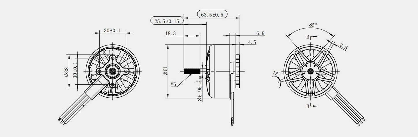 | Max. P (W) | Feszültség (V) | Max. I. (A) | KV | Üresjárati áram (A) | Ellenállás (mΩ) | lengyelek | Motor Dim. (mm) | Állórész Dim. (mm) | Szerelés (mm) | N.W. (g) | Prop. (hüvelyk) | ||||||||||||||