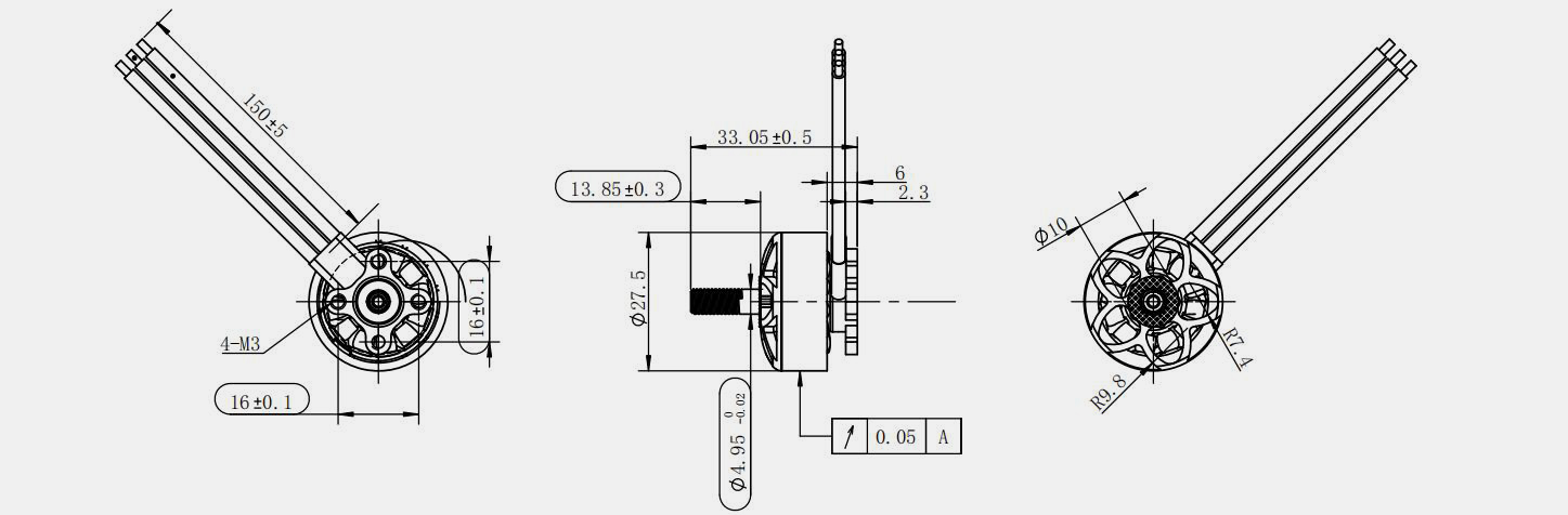 | Max. P(W) | Feszültség (V) | Max. I.(A) | KV | Üresjárati áram (A) | Ellenállás (mΩ) | lengyelek | Motor dim. (mm) | Állórész dim. (mm) | Szerelés (mm) | N.W.(g) | Prop. (hüvelyk) | |||||||||||||||||